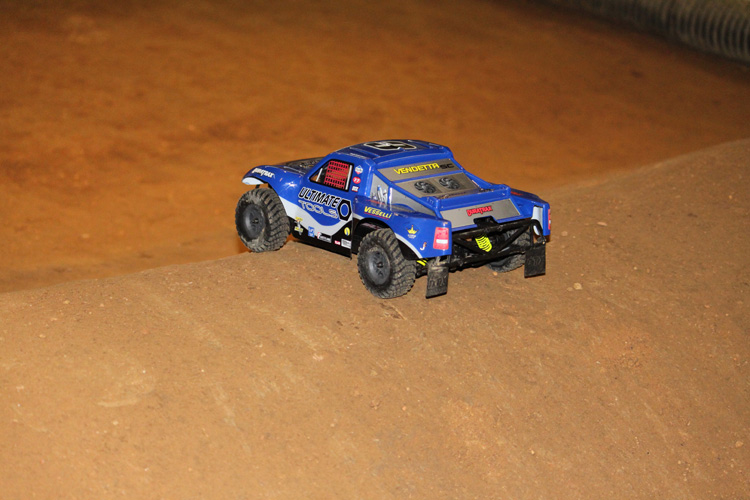 Wydaje się, że firma Duratrax zaprojektowała model Vendetta SC z myślą o używaniu go na torze wyścigowym, ale, szczerze mówiąc, nie oczekiwałem, że mały silniczek szczotkowy VR3 będzie tak szybki. Byłem zaskoczony prędkością, z jaką ten mikrus przemieszczał się po wybojach i zakrętach piaszczystego toru.