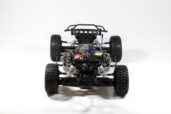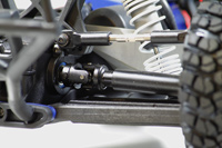 Zawieszenie można w pełni regulować przy użyciu narzędzi dołączonych do modelu. Klucz zawarty w zestawie umożliwia dostosowanie zbieżności kół oraz kąta nachylenia przednich i tylnych kół. Stalowe drążki o grubości 4 mm powinny zapewnić wręcz pancerną wytrzymałość.