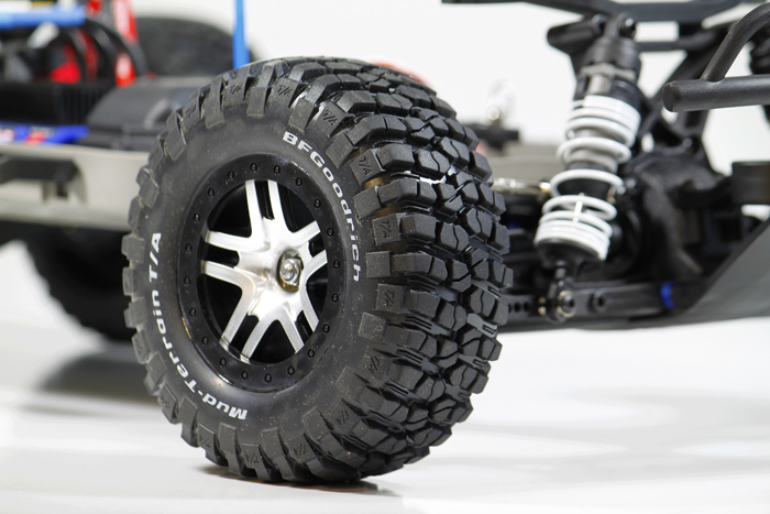 Opony wzorowane na model Mud Terrain T/A są wyposażone w głęboki terenowy bieżnik przeznaczony na błoto, który zapewnia wysoką przyczepność, i są licencjonowane przez firmę BF Goodrich, co zwiększa realizm modelu. Profil opony po wewnętrznej stronie jest znacznie niższy niż profil po zewnętrznej stronie, ponieważ wewnętrzna średnica felgi jest większa niż średnica zewnętrzna.