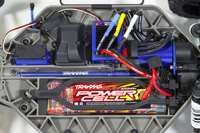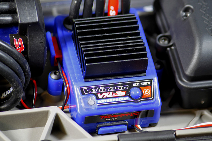 Bezczujnikowy (bezsensorowy) silnik bezszczotkowy Velineon 3500 jest połączony z regulatorem elektronicznym VXL-3S. Tak jak pozostałe podzespoły elektroniczne w modelu Slash 4x4, regulator jest wodoszczelny.