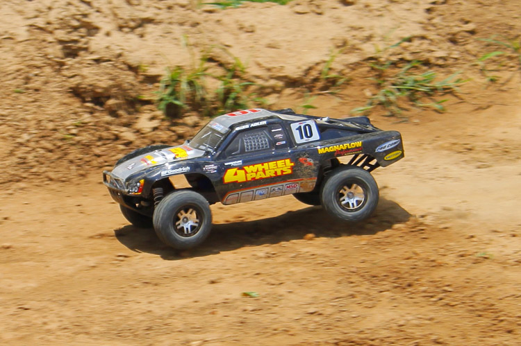 Przez większość czasu model był testowany na piaszczystym torze terenowym. Najpierw sprawdziłem model ze standardowym 7-ogniwowym pakietem NiMH. Model prowadził się dobrze, a pakiet zapewniał optymalny stosunek mocy do kontroli nad modelem. Samochód prowadził się stabilnie i szybko pokonywał zakręty.