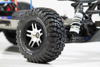 Opony wyglądają atrakcyjnie, ale nie zapewniały wystarczającej przyczepności na twardej, ubitej gliniastej nawierzchni. Zastosowanie innych opon w tym modelu poprawi prowadzenie i pozwoli uzyskiwać lepszy czas okrążeń na torze. Wydaje mi się, że te opony zapewniałyby lepszą przyczepność na bardziej miękkiej nawierzchni.
