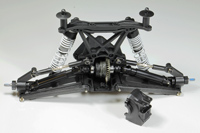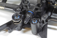 Wieżyczki amortyzatorów i wahacze dolne są wyposażone w wiele punktów mocowania amortyzatorów. Zmiana położenia amortyzatorów ma wpływ na kąt wychylania się modelu w zakręcie oraz prześwit.