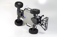 Plastikowe podwozie wanienkowe jest dobrze wyprofilowane i zawiera wiele pionowych elementów zwiększających sztywność. Po bokach przymocowano plastikowe wsporniki karoserii. Chronią one boki podwozia i nadwozie przy bocznych uderzeniach.