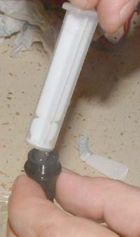 nie posiadamy oleju do amortyzatorów, to za pomocą strzykawki wybieramy go z